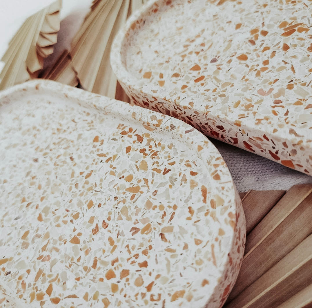 Handcrafted in terrazzo using marble fragments and natural pigments, each tray is made slowly, in small batches. No two are ever the same — each one carries the subtle variations of natural stone and the human touch that shaped it.
