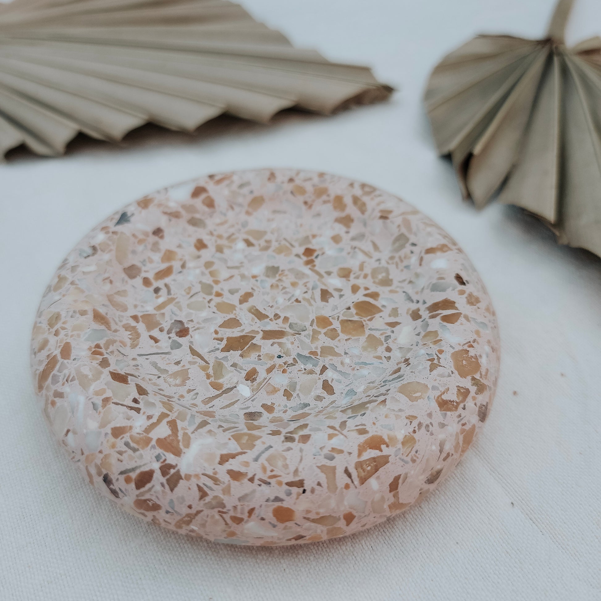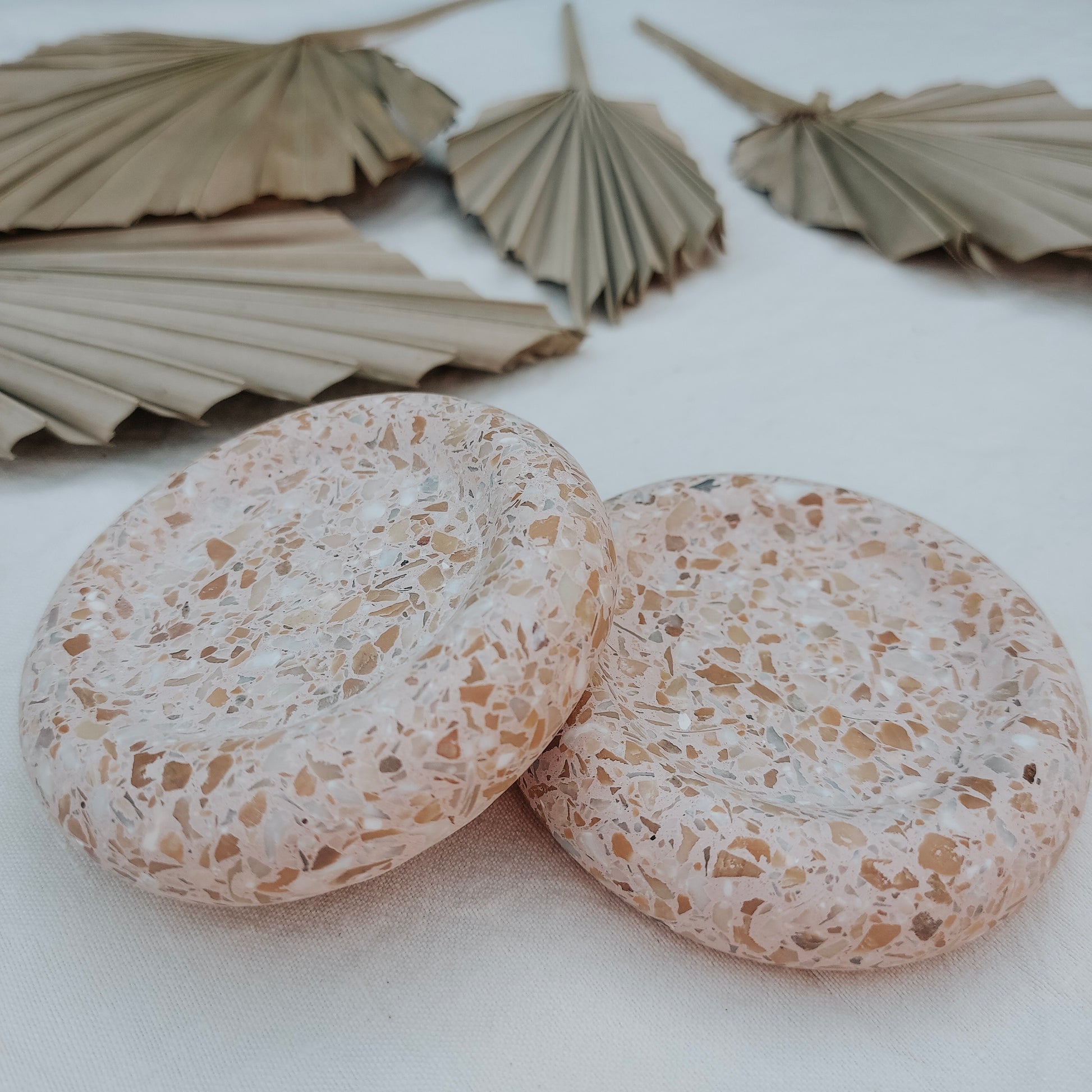 Handcrafted in terrazzo with marble fragments and natural pigments, each tray is made slowly, in small batches. The surface carries subtle variations of tone and texture, shaped by both the stone and the human hand. No two pieces are ever exactly alike.